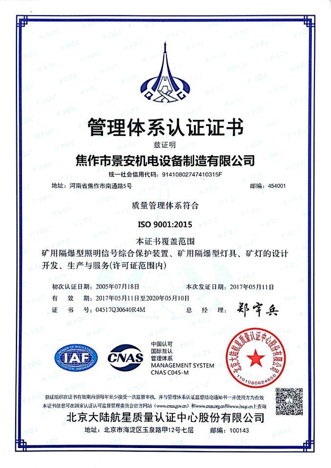 焦作市景安機(jī)電設(shè)備制造有限公司(原焦作市無(wú)線(xiàn)電一廠(chǎng)),是國(guó)家重點(diǎn)生產(chǎn)礦用防爆電子電器產(chǎn)品的專(zhuān)業(yè)企業(yè),全國(guó)煤炭行業(yè)機(jī)電產(chǎn)品定點(diǎn)生產(chǎn)單位,中國(guó)電器工業(yè)協(xié)會(huì)防爆電氣分會(huì)理事,市級(jí)礦用隔爆型工程技術(shù)中心,公司占地30000平方米,廠(chǎng)房10000平方米,ISO9001:2008質(zhì)量管理體系和A級(jí)計(jì)量認(rèn)證企業(yè)。
